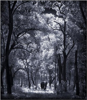 Hola Javi. Cualquier profesional de la fotografía hace un un mínimo de retoque básico a sus fotos, y si quieren transmitir algo especial se le añade un plus como es el caso. No soy fotógrafo, pero evidentemente en esta serie de imágenes, el blanco y negro es fundamental, es más expresivo, se destaca al animal en sí, su voumen, textura, luces, sombras, profundidad, etc., y con el blanco y negro esto se consigue aislar mejor que si fuera a color; tambien se puede notar un viñeteado en todas las fotos (oscurecimiento de los bordes exteriores de la misma),que, aunque es un fenómeno que suele ocurrir a veces cuando utilizamos parasoles o filtros en la cámara, se puede 'provocar' con Photoshop con el fin de darle un aura especial a la imagen; se puede notar también la llamada técnica HDR o alto rango dinámico (estoy trabajando en un tutorial sobre ello), que es conseguir que todos los detalles de la foto se aprecien perfectamente aunque tengan niveles de luminosidad totalmente diferentes, lo podemos ver en los cielos con las nubes tan nítidas; y ya por último el proceso de retoque típico de Photoshop, trabajar con selecciones, enfocar algunas, desenfocar otras, oscurecer partes que no aportan y aclarar zonas qui si lo hacen. En definitiva, no sólo es importante en lograr la instantánea, la post-producción fotográfica es fundamental.