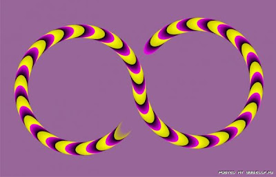 La ilusión óptica que veis aquí arriba es del profesor de psicología de la Universidad Ritsumeikan de Kioto, el japonés Akiyoshi Kitaoka. Según él si ves la imagen inmóvil, eres una persona tranquila, equilibrada y que ha descansado; si la ves en movimiento, necesitas unas vacaciones. En su página web veréis decenas de ilusiones creadas por él, y con un mensaje de advertencia al principio: "Algunas de las imágenes de este sitio web pueden causar mareos o posiblemente crisis epilépticas. Esto último ocurre cuando el cerebro no puede manejar la información conflictiva de sus dos ojos. Si comienza a sentirse mal cuando utiliza este sitio web, cubrir inmediatamente un ojo con la mano y, a continuación, salir de la página. No cierre los ojos ya que puede provocar que el ataque empeore". Así que ojo al parche. Os dejo unas cuantas muestras más (pinchad en cada imagen para ampliarla).